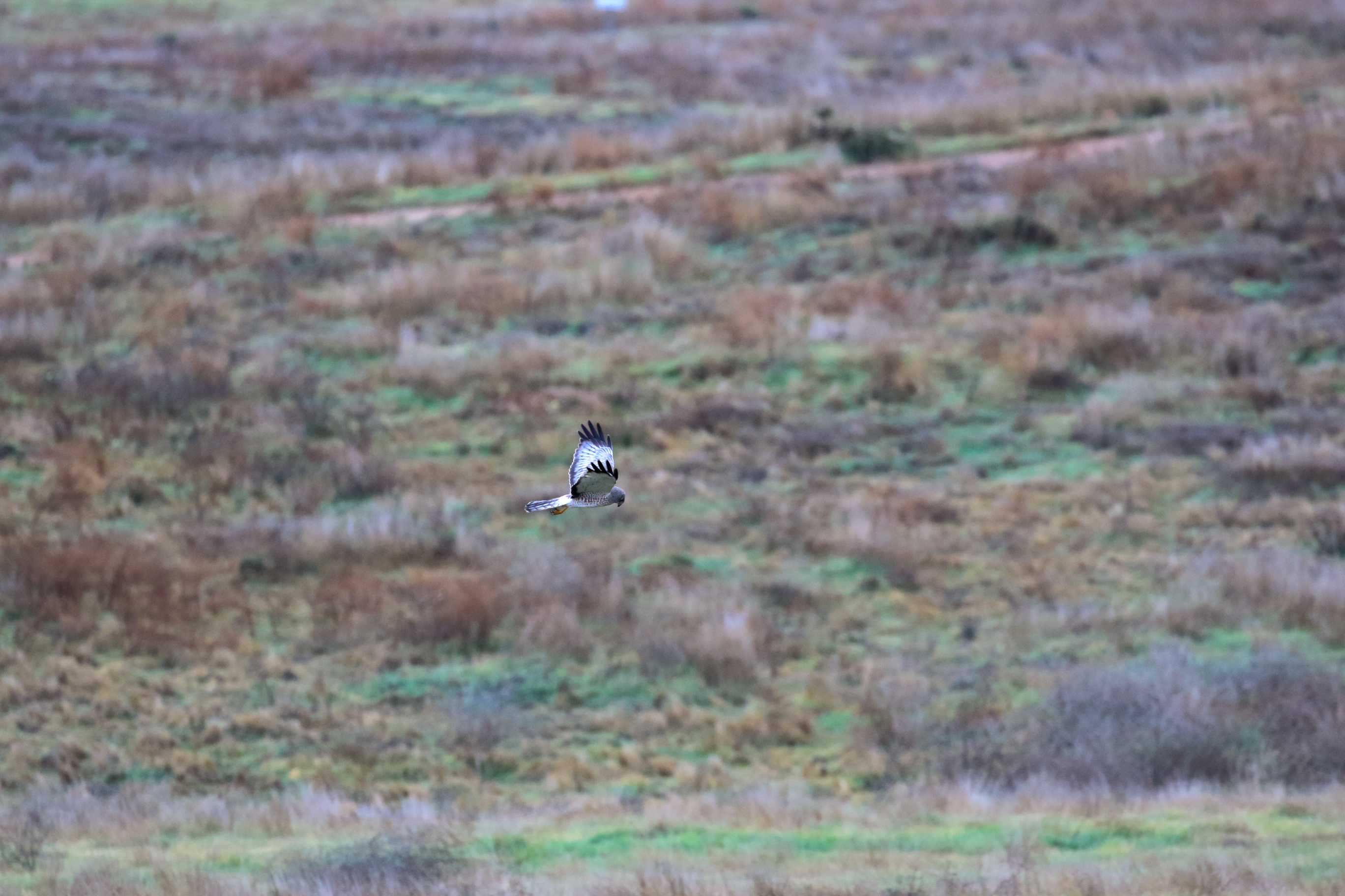 A northern harrier searching for a prey