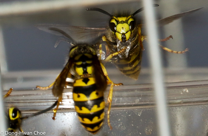 Yellowjacket wasps handling hydrogel baits